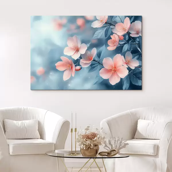 Cuadros Flores rosas sobre fondo azul Nr s42846