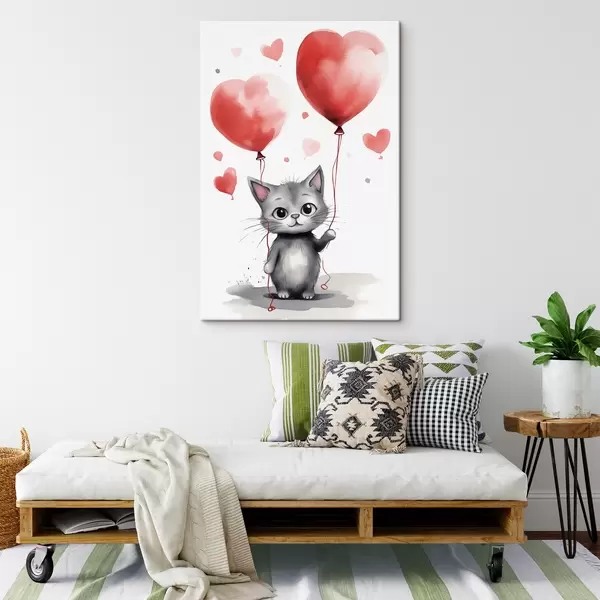 Cuadros Lindo gatito con globos en forma de corazón Nr s42871