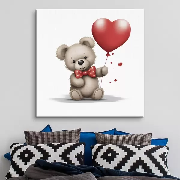 Cuadros Simpático oso con globo de corazón rojo Nr s42879