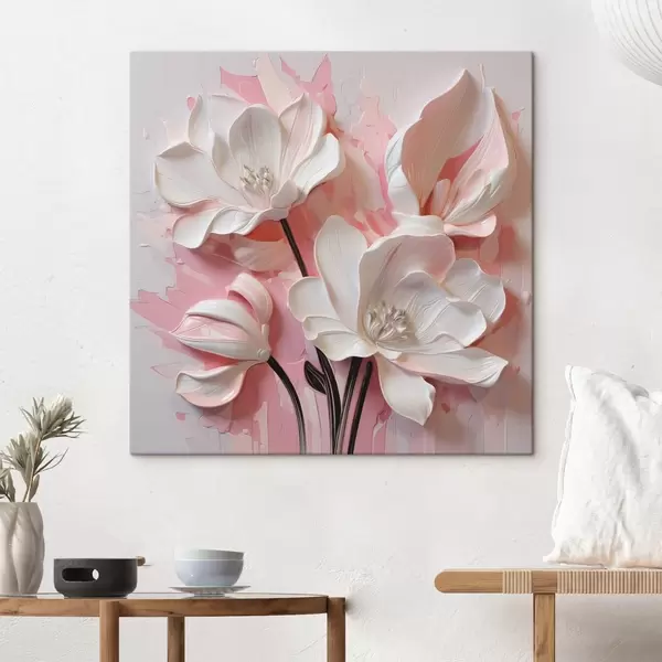 Hay tres tipos de material disponibles para pedidos: Lienzo Económico - material denso y duradero para impresión digital, idéntico al lienzo de pintor, superficie impermeable, reproducción realista de los detalles, material de grano medio. Lienzo Premium - la textura se asemeja a la de un lienzo de pintor (pequeños hilos entrelazados). Reproducción suave y detallada de la imagen sobre una superficie mate. Eco-Premium - tejido 100% algodón de alta calidad. Gracias a las fibras naturales de algodón, el material es duradero y resistente al desgaste. Excelente reproducción del color y el detalle.