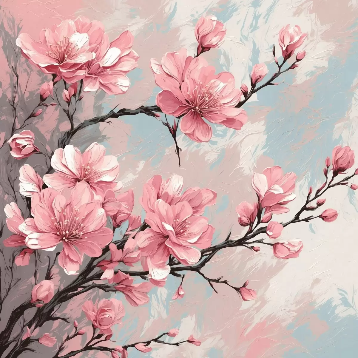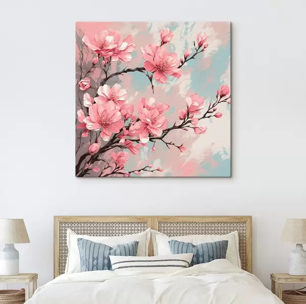 Cuadros Flores y tallos rosas en estilo de pintura acrílica Nr s42918