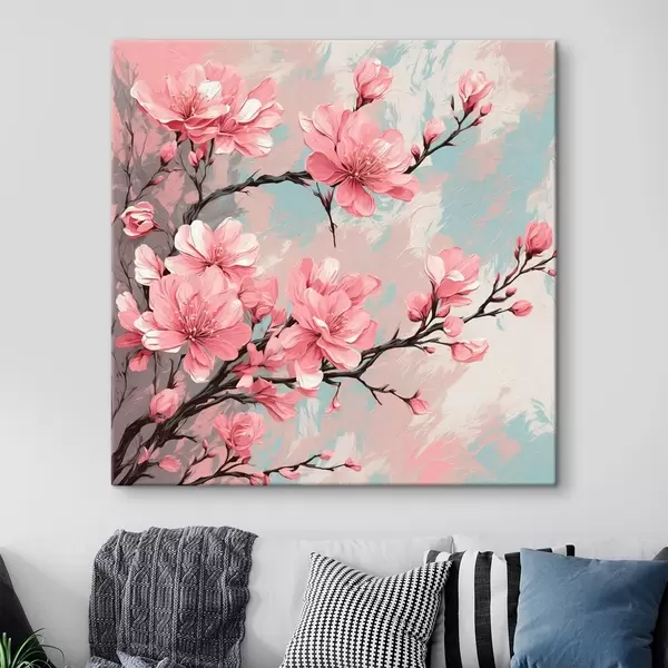 Cuadros Flores y tallos rosas en estilo de pintura acrílica Nr s42918