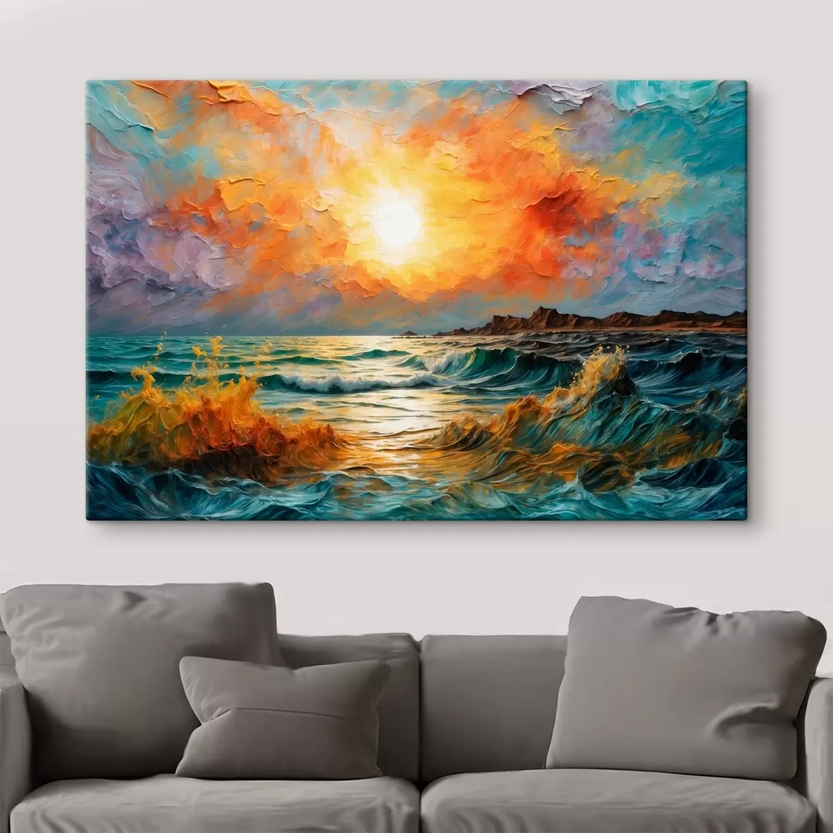 Cuadros Mar tormentoso y sol al óleo Nr s42920