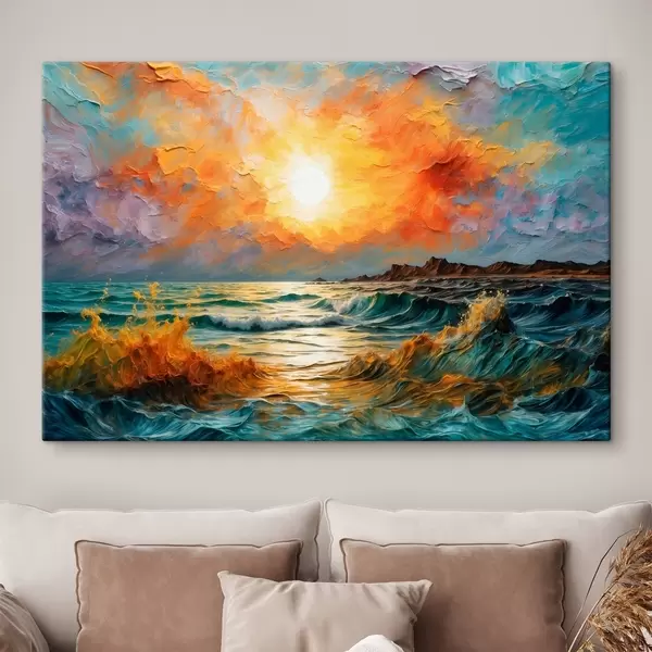 murales de pared Mar tormentoso y sol al óleo s42920
