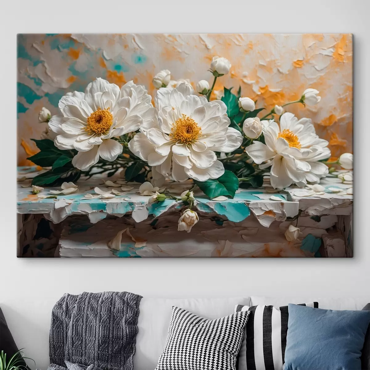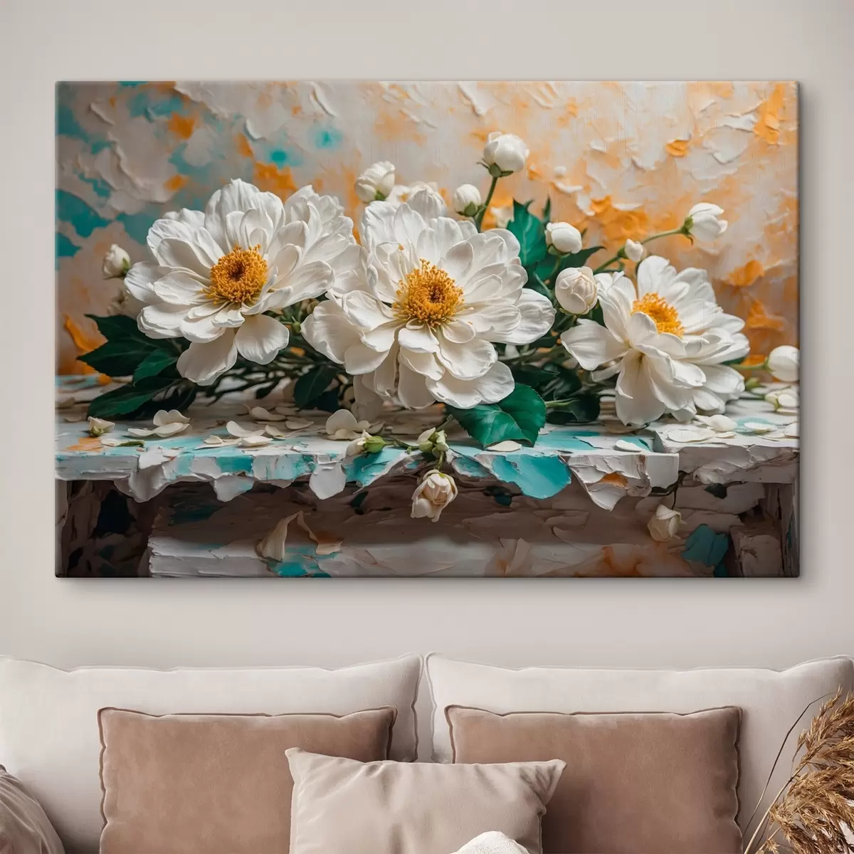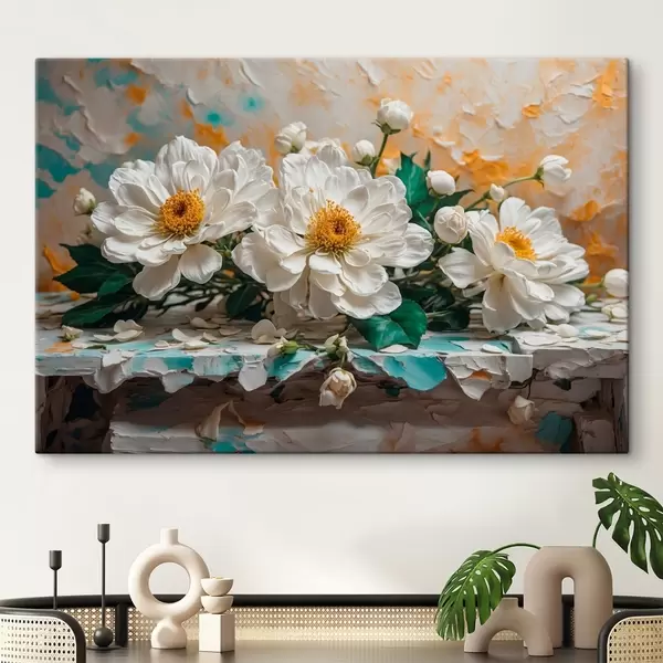 Cuadros Flores blancas en una mesa sobre fondo abstracto Nr s42924