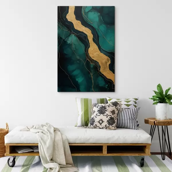 Cuadros Estampado abstracto con profundos tonos verdes y un cálido elemento de contraste Nr s42934