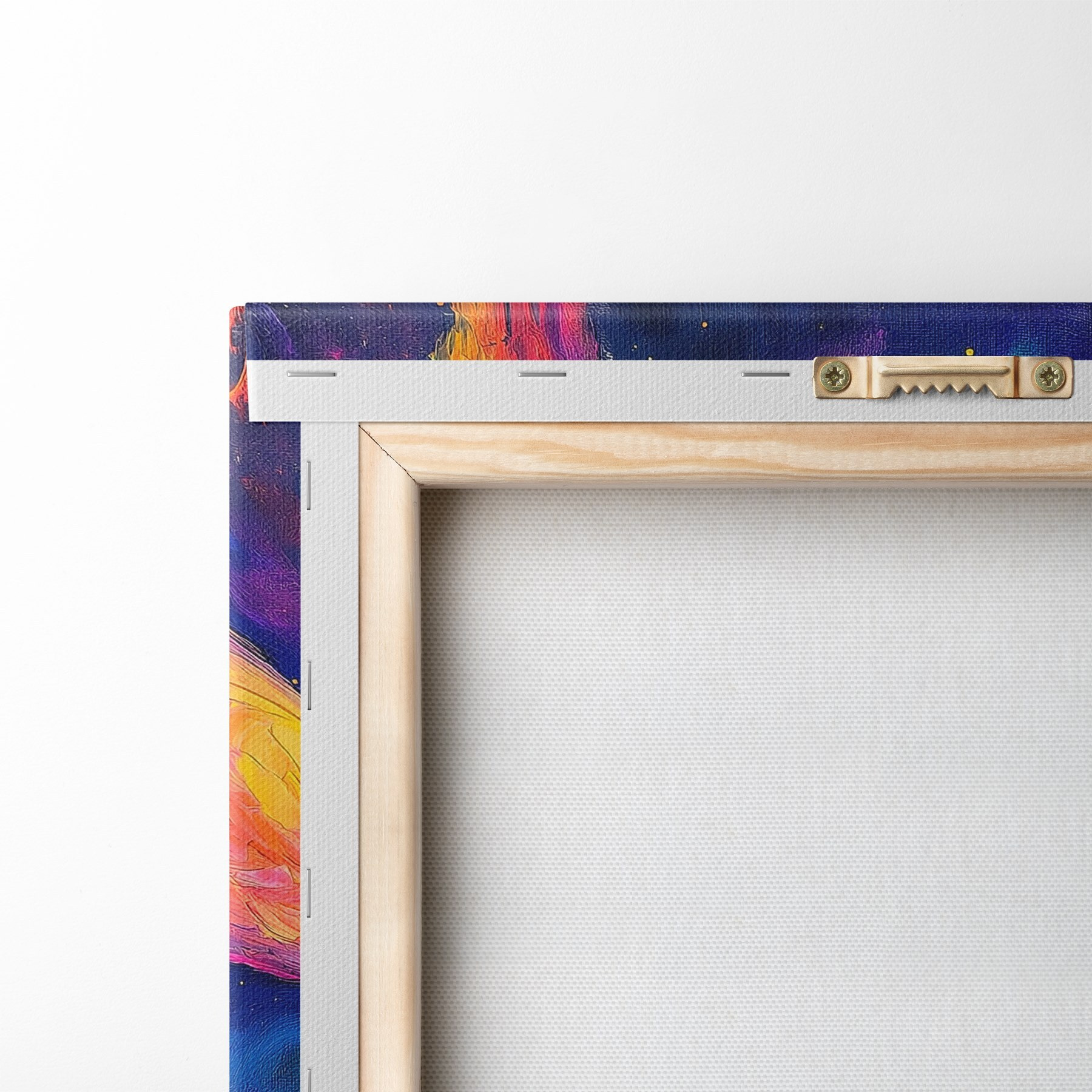 Vendemos cuadros en bastidor: se trata de un marco de madera sobre el que se extiende el lienzo. Este cuadro no necesita marco; puedes colgarlo directamente en la pared.