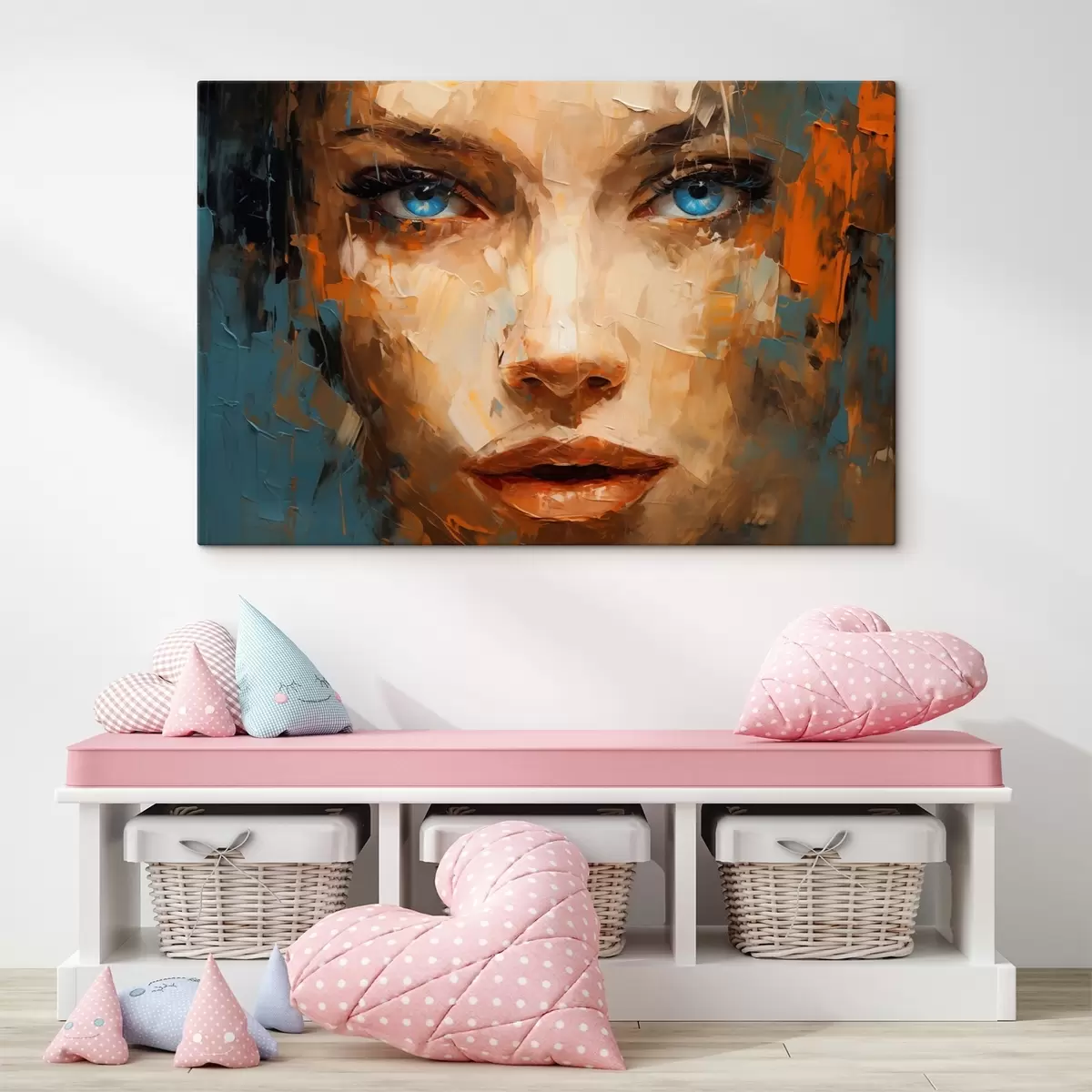 Cuadros Retrato abstracto de una mujer con pinceladas atrevidas y llamativos ojos azules Nr s42939