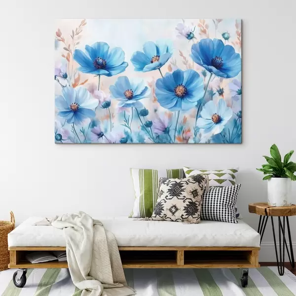 Cuadros Flores azules sobre fondo azul Nr s42971