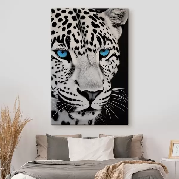 Cuadros Retrato en blanco y negro de un leopardo con ojos azules Nr s43008