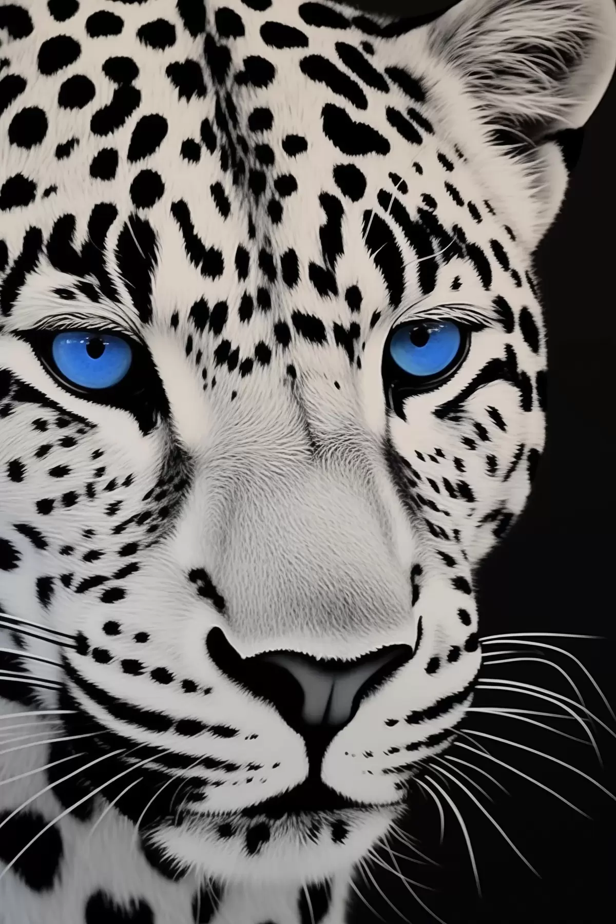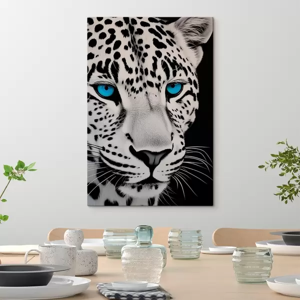 Cuadros Retrato en blanco y negro de un leopardo con ojos azules Nr s43008