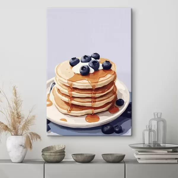 Cuadros Tortitas con sirope y arándanos en un plato Nr s43009