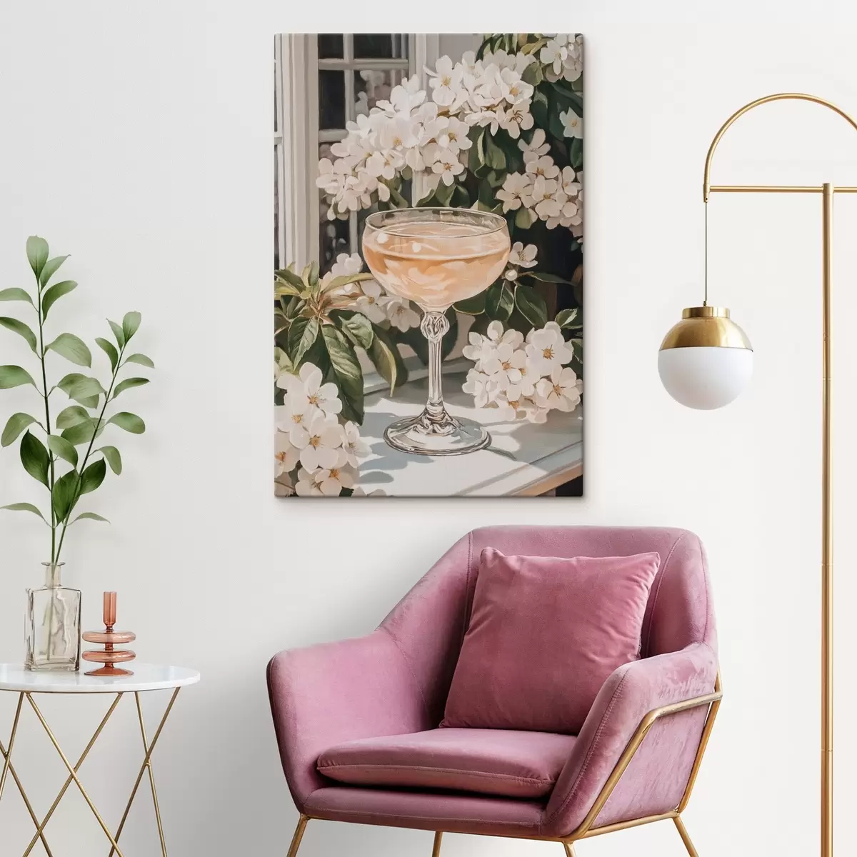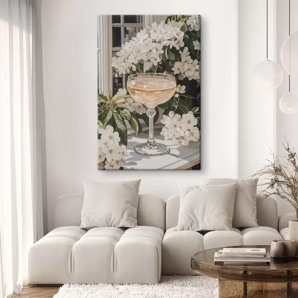 Cuadros Copa de champán, estilo vintage, acuarela, flores blancas Nr s43051