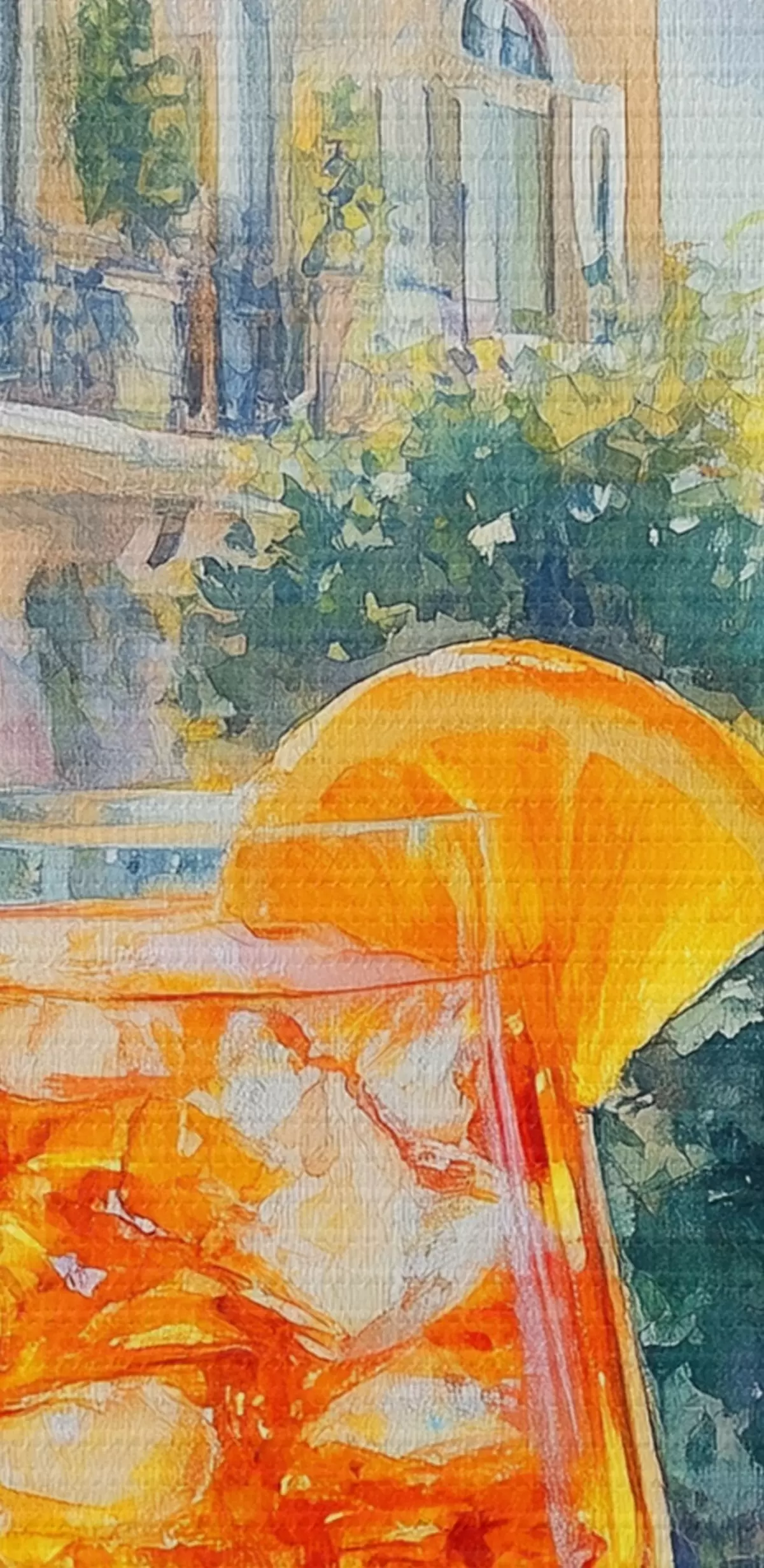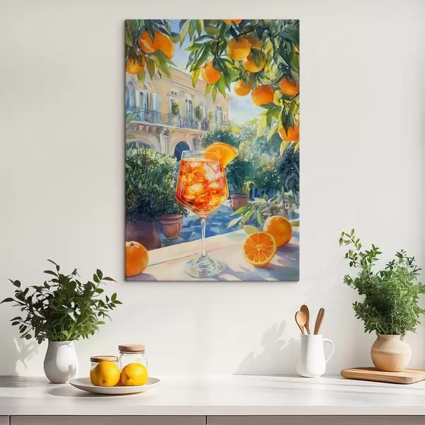Cuadros Cóctel con naranjas, estilo acuarela, Italia, Aperol Spritz, arquitectura, jardín de verano Nr s43061