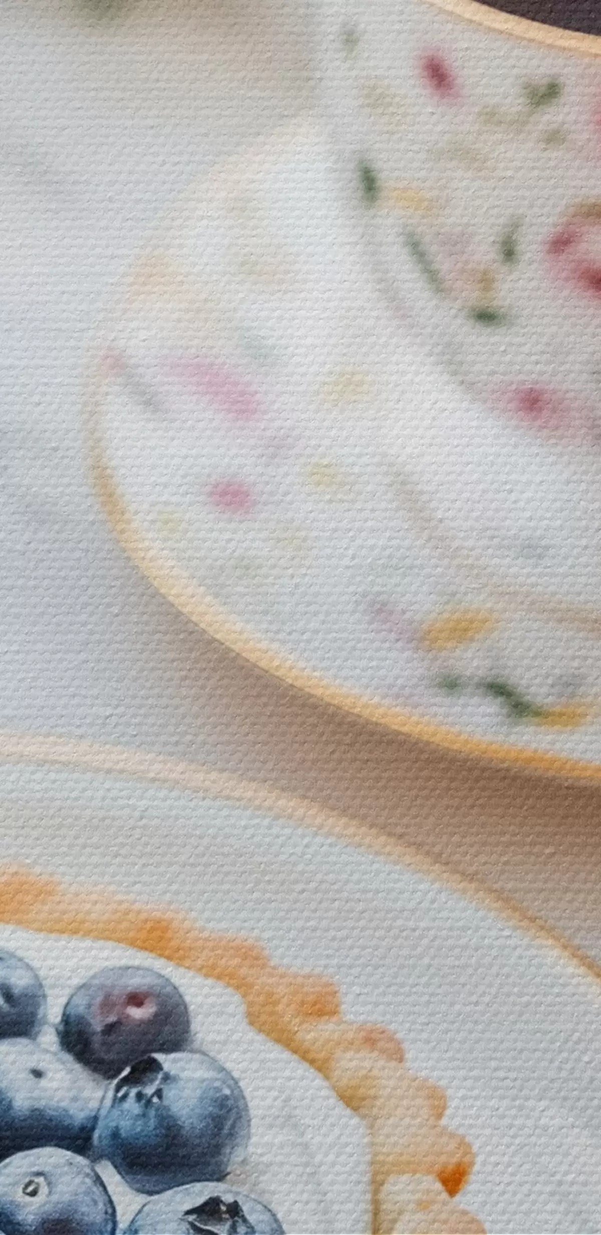 Cuadros Cupcake de arándanos con taza de té, estilo boho, rosas rosas Nr s43066