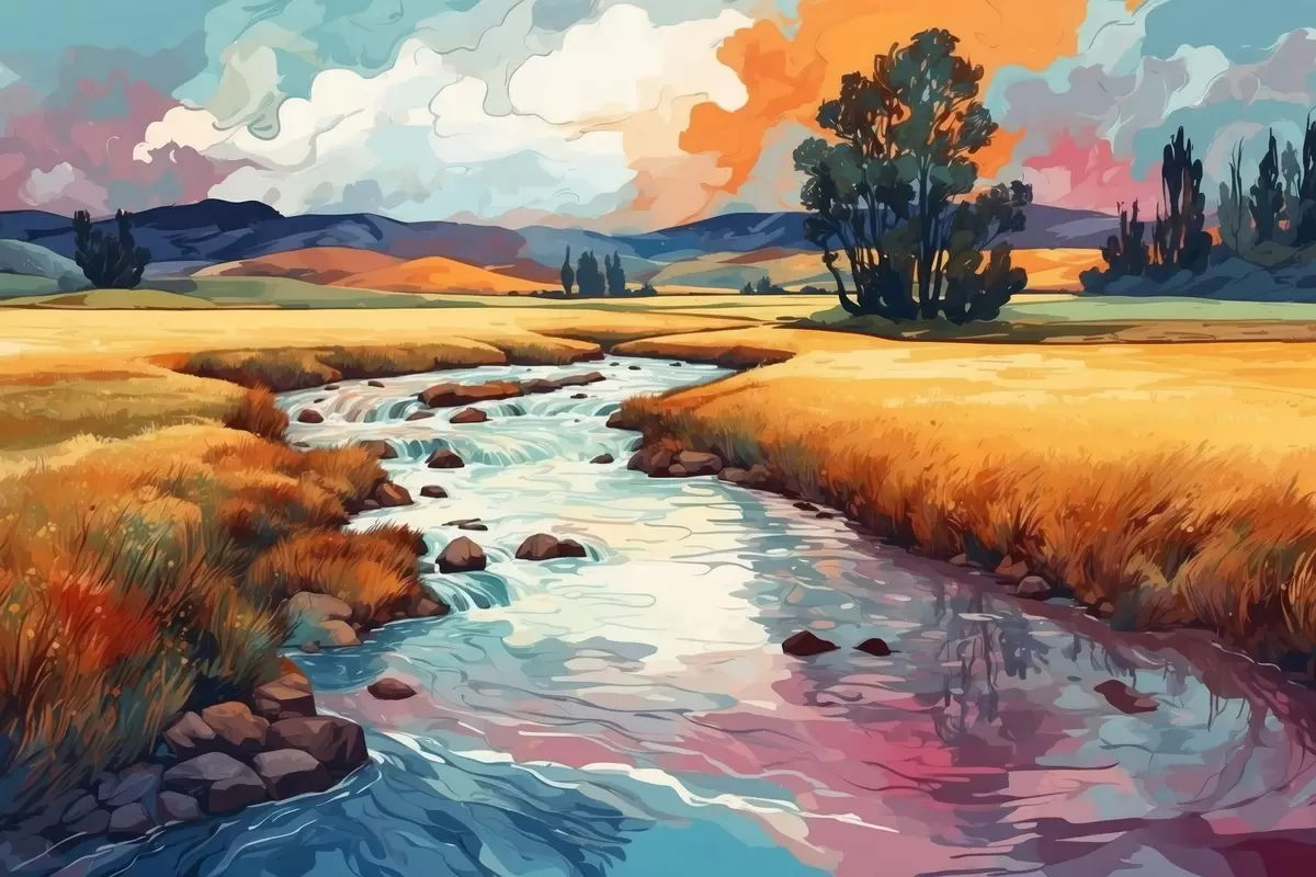 Cuadros Arroyo en el campo al estilo de la acuarela Nr s43110