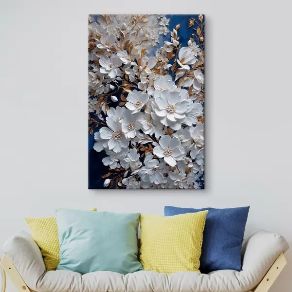 Cuadros Flores blancas sobre fondo azul. Nr s43116