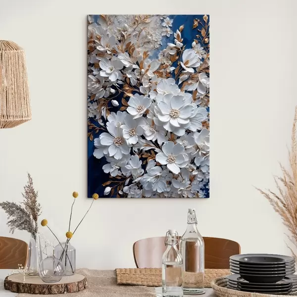 Cuadros Flores blancas sobre fondo azul. Nr s43116