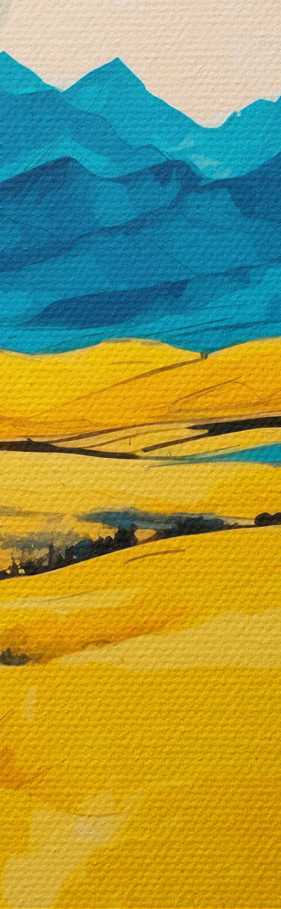 Cuadros Campo amarillo sobre el fondo de montañas en estilo de pintura de acuarela Nr s43117