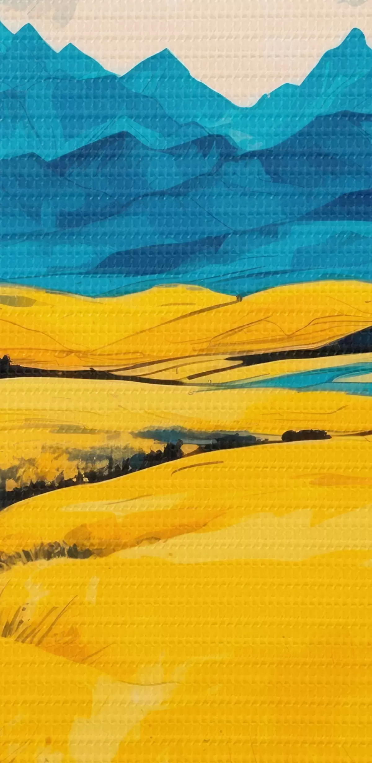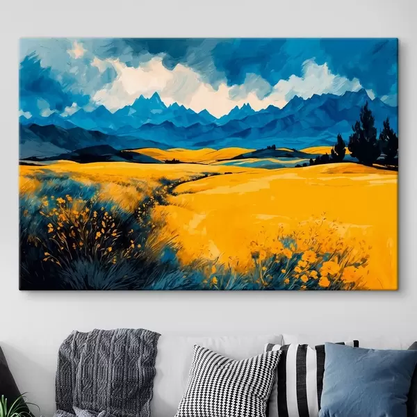 Cuadros Campo amarillo sobre el fondo de montañas en estilo de pintura de acuarela Nr s43117