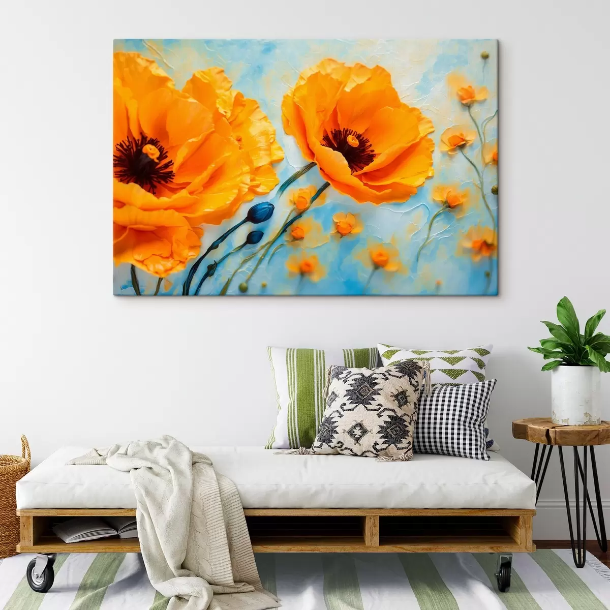 Hay tres tipos de material disponibles para pedidos: Lienzo Económico - material denso y duradero para impresión digital, idéntico al lienzo de pintor, superficie impermeable, reproducción realista de los detalles, material de grano medio. Lienzo Premium - la textura se asemeja a la de un lienzo de pintor (pequeños hilos entrelazados). Reproducción suave y detallada de la imagen sobre una superficie mate. Eco-Premium - tejido 100% algodón de alta calidad. Gracias a las fibras naturales de algodón, el material es duradero y resistente al desgaste. Excelente reproducción del color y el detalle.
