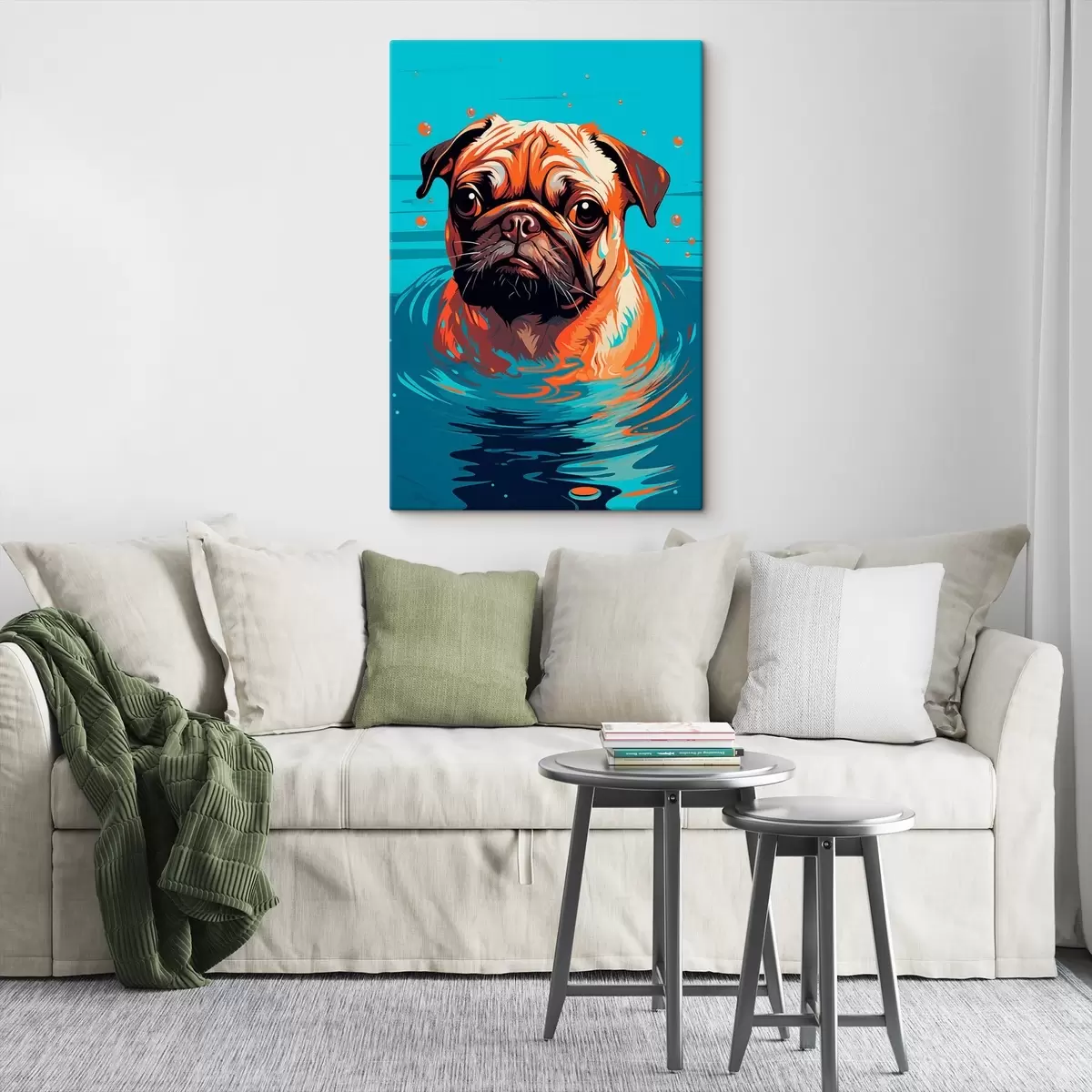Cuadros Retrato estilizado de un carlino en el agua con mirada expresiva Nr s43136