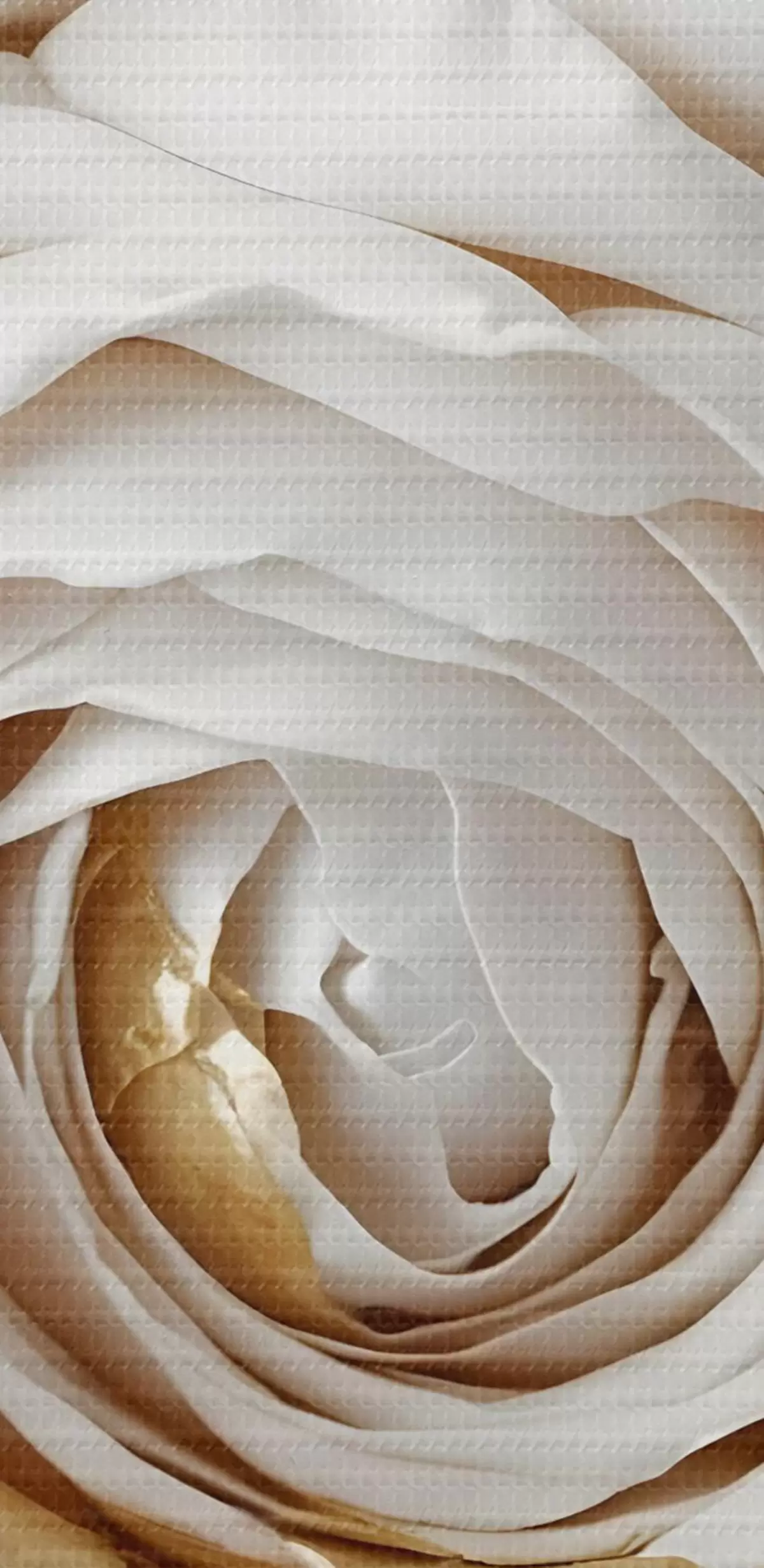murales de pared Una rosa decorativa minimalista blanca con detalles amarillos, los pétalos están en capas y rizados s43160
