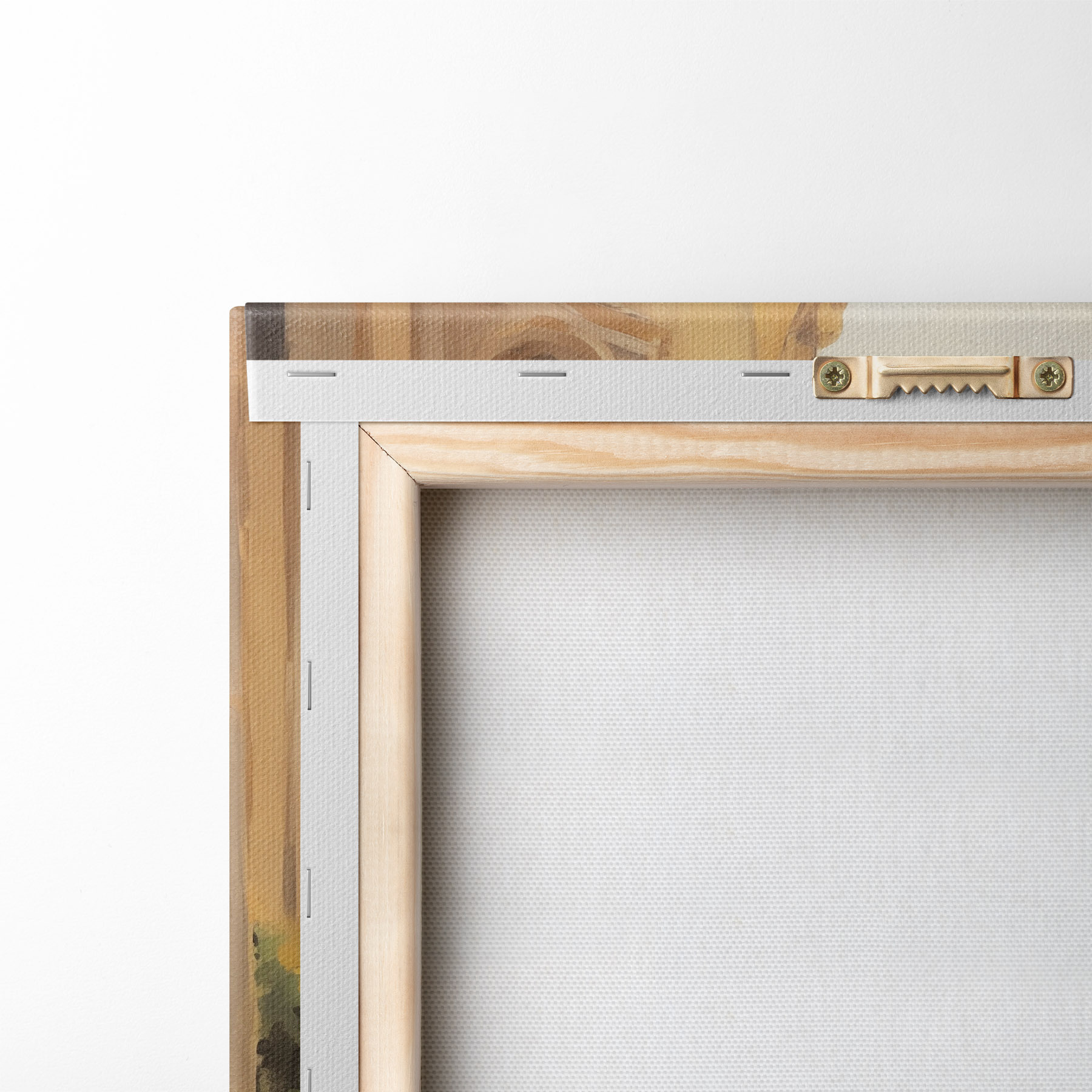 Vendemos cuadros en bastidor: se trata de un marco de madera sobre el que se extiende el lienzo. Este cuadro no necesita marco; puedes colgarlo directamente en la pared.