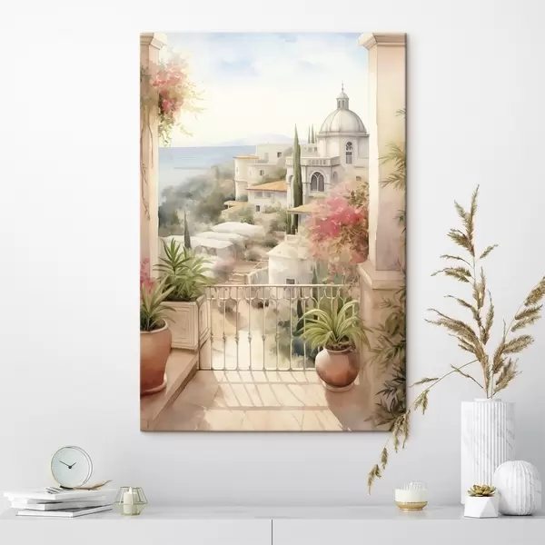 Cuadros Paisaje de verano en España, arquitectura mediterránea, estilo acuarela Nr s43181