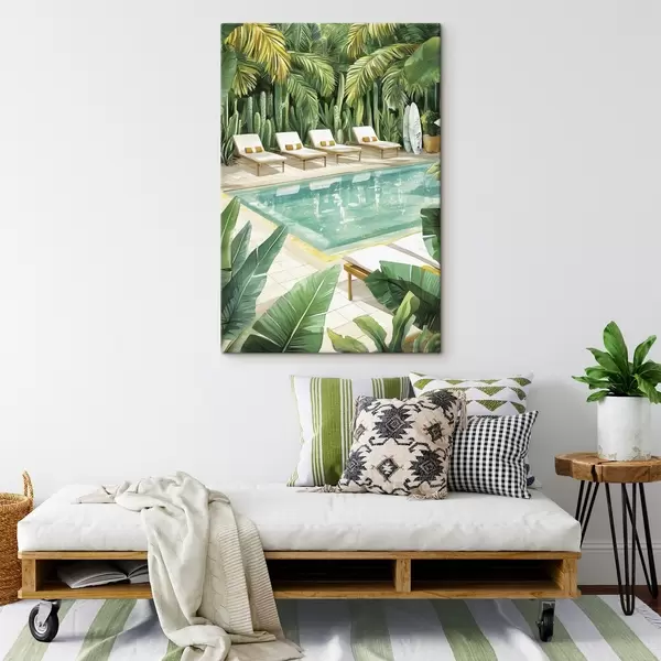 Cuadros Naturaleza tropical, jardín, piscina de verano, surf, estilo acuarela Nr s43190