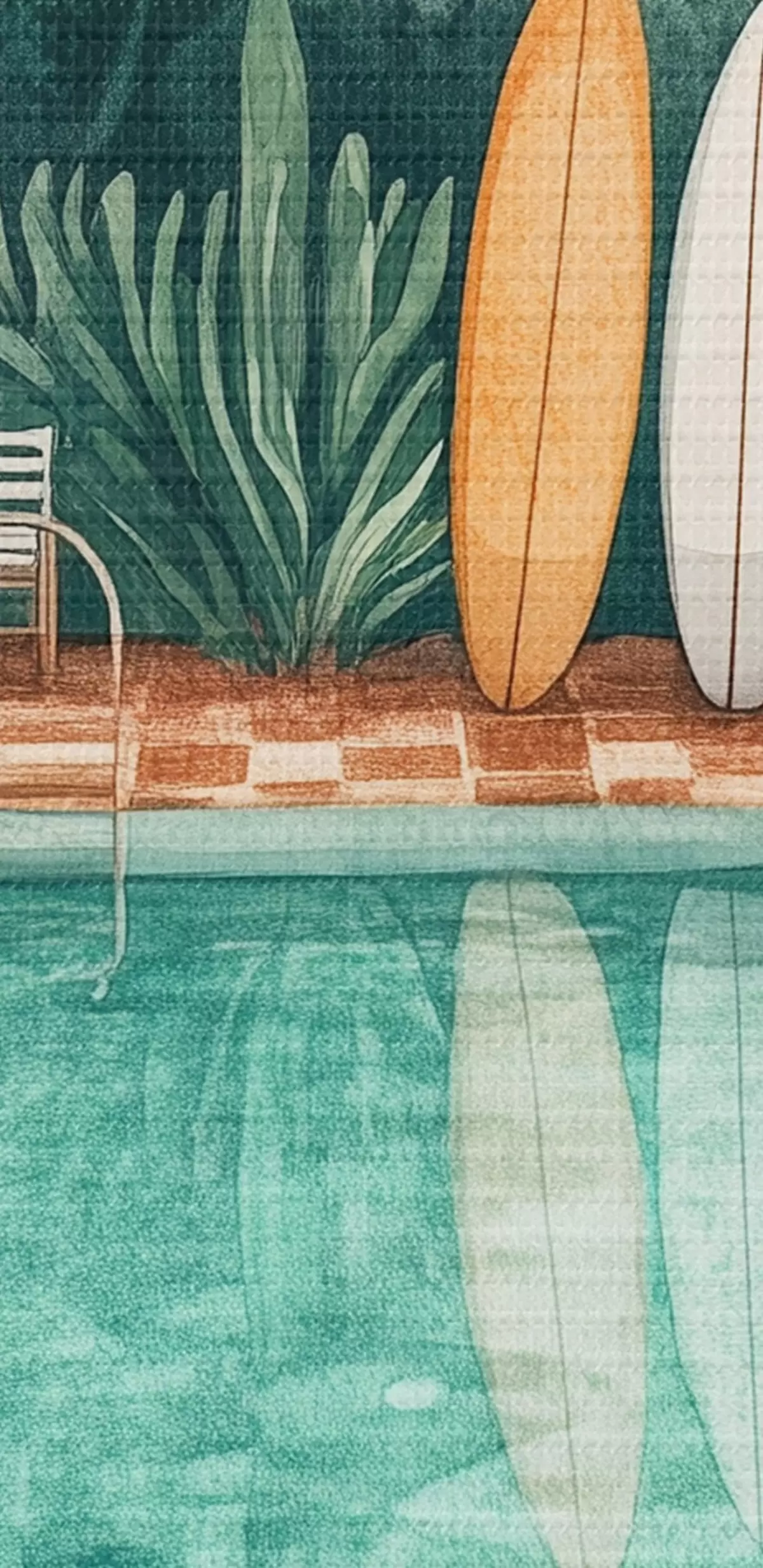 murales de pared Piscina de verano vintage, bosque tropical, vegetación, palmeras, estilo acuarela s43191