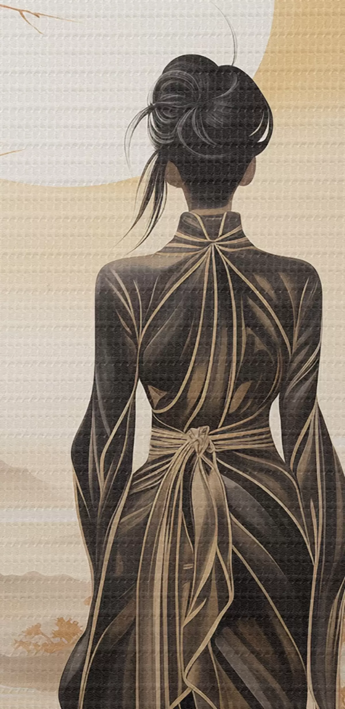 Cuadros Gente, Japón, chica al atardecer sobre el fondo de sakura y montañas Nr s43256