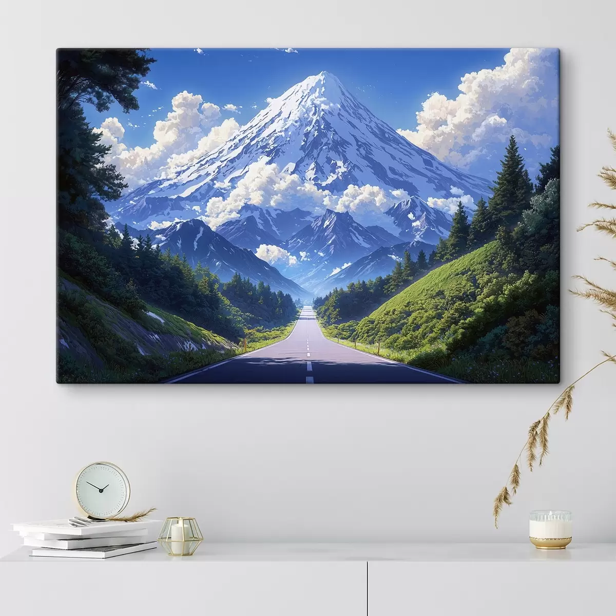 Cuadros Camino de las montañas con nubes y bosques alrededor Nr s43317