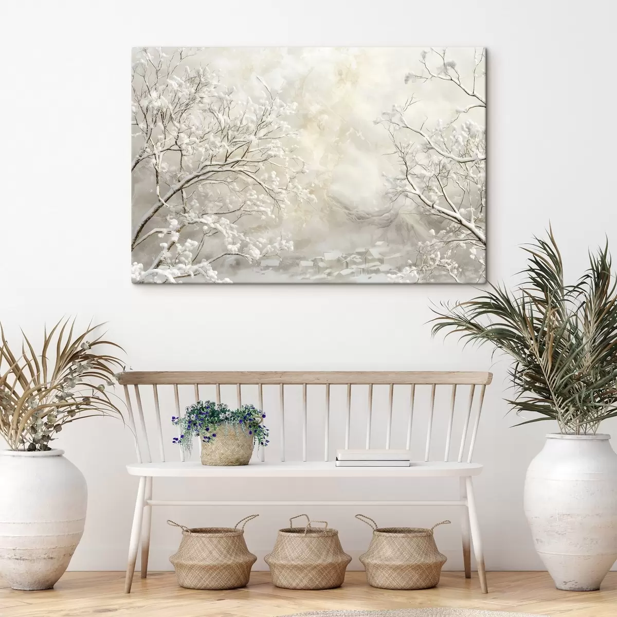 Cuadros Ramas invernales con nieve sobre el fondo de un pueblo invernal Nr s43321