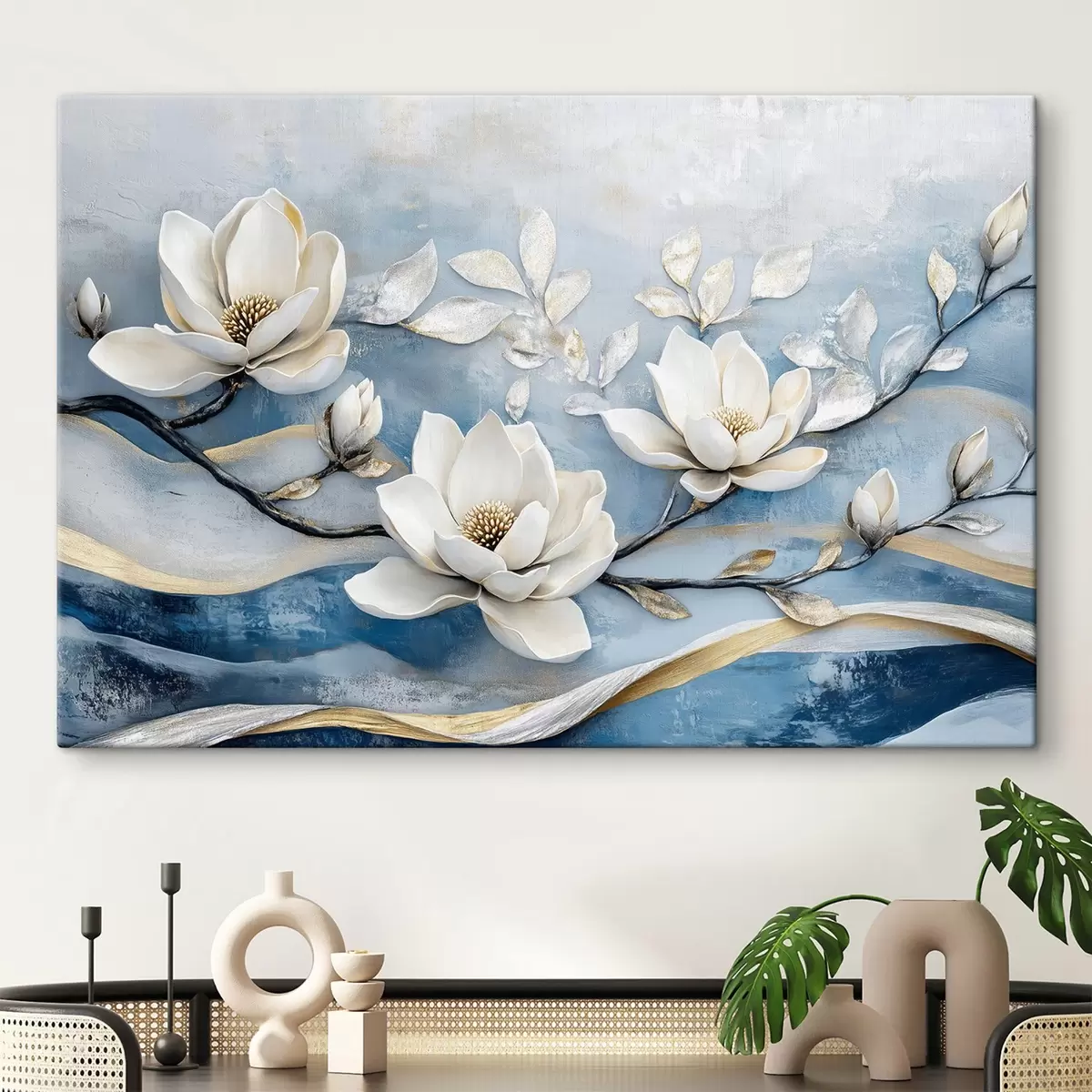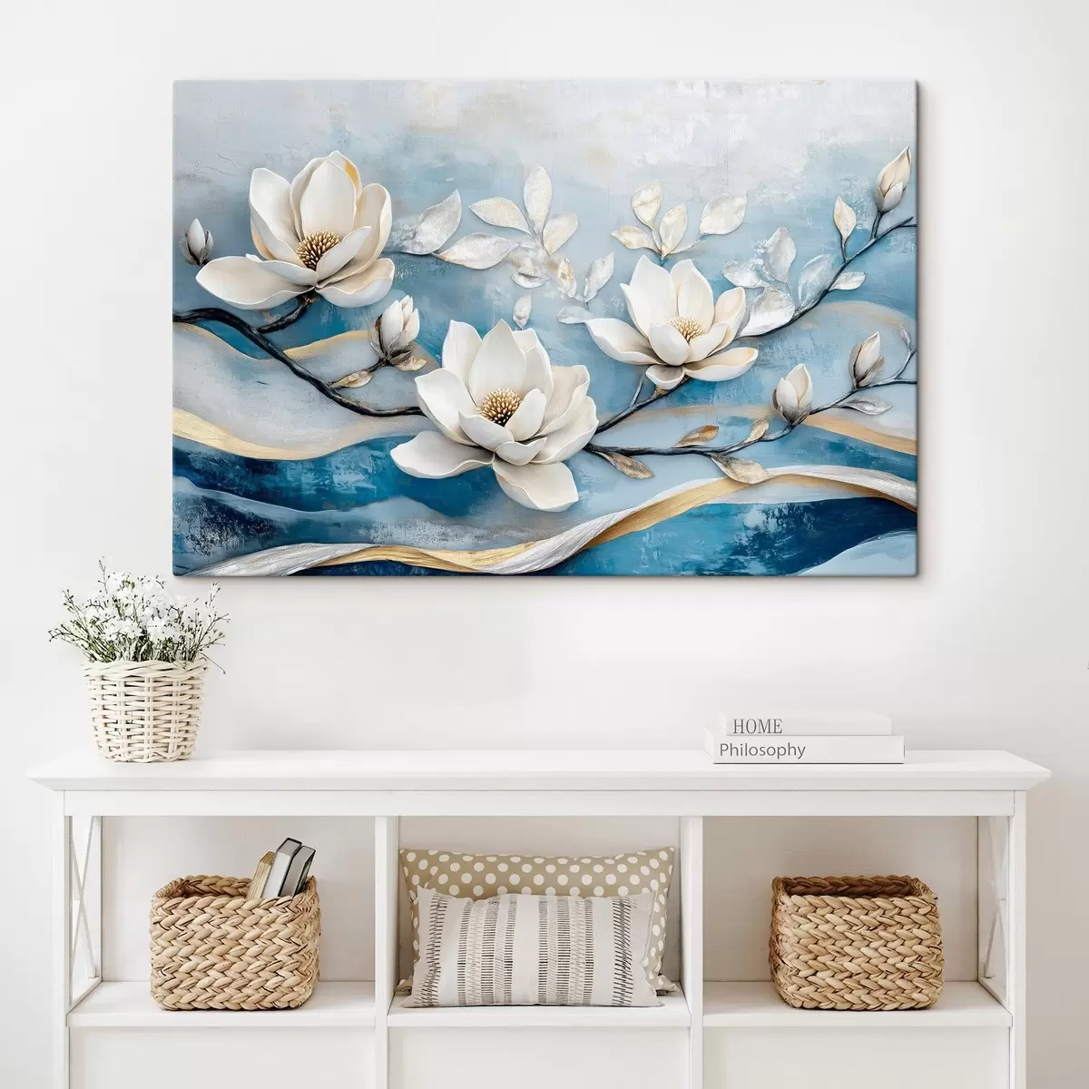 Cuadros Rama de magnolia sobre fondo abstracto azul-amarillo Nr s43323