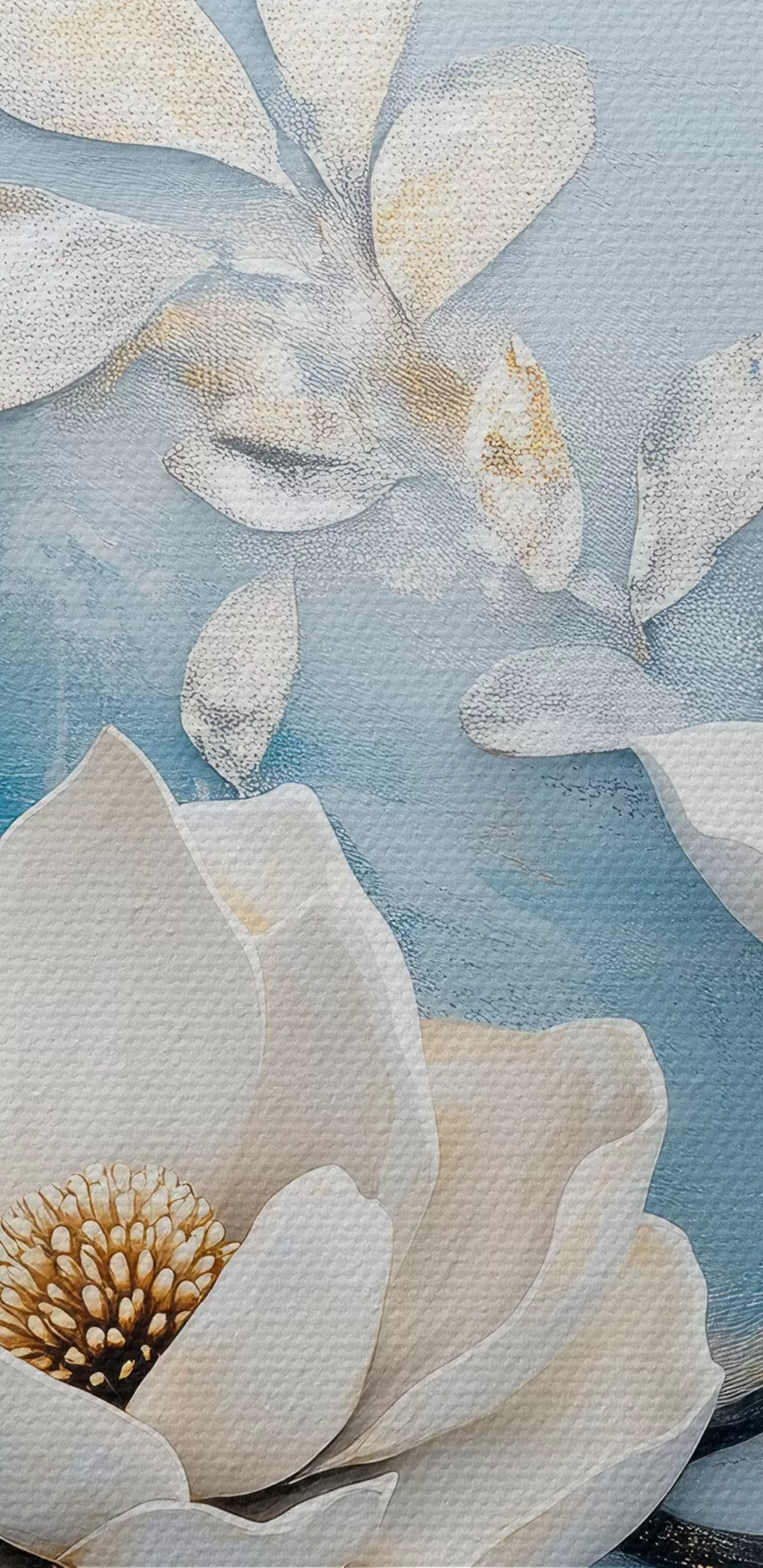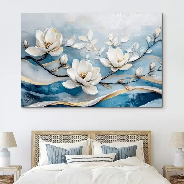 Cuadros Rama de magnolia sobre fondo abstracto azul-amarillo Nr s43323