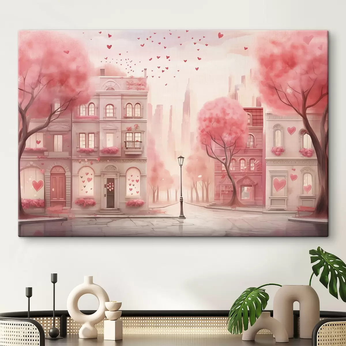 Cuadros Romántica calle rosa con corazones Nr s43324