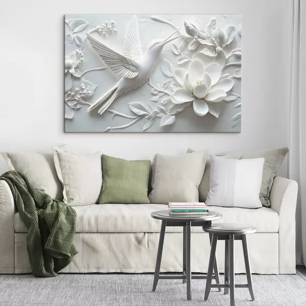 Cuadros Imagen 3d en blanco y negro de un pájaro y las flores que lo rodean Nr s43329