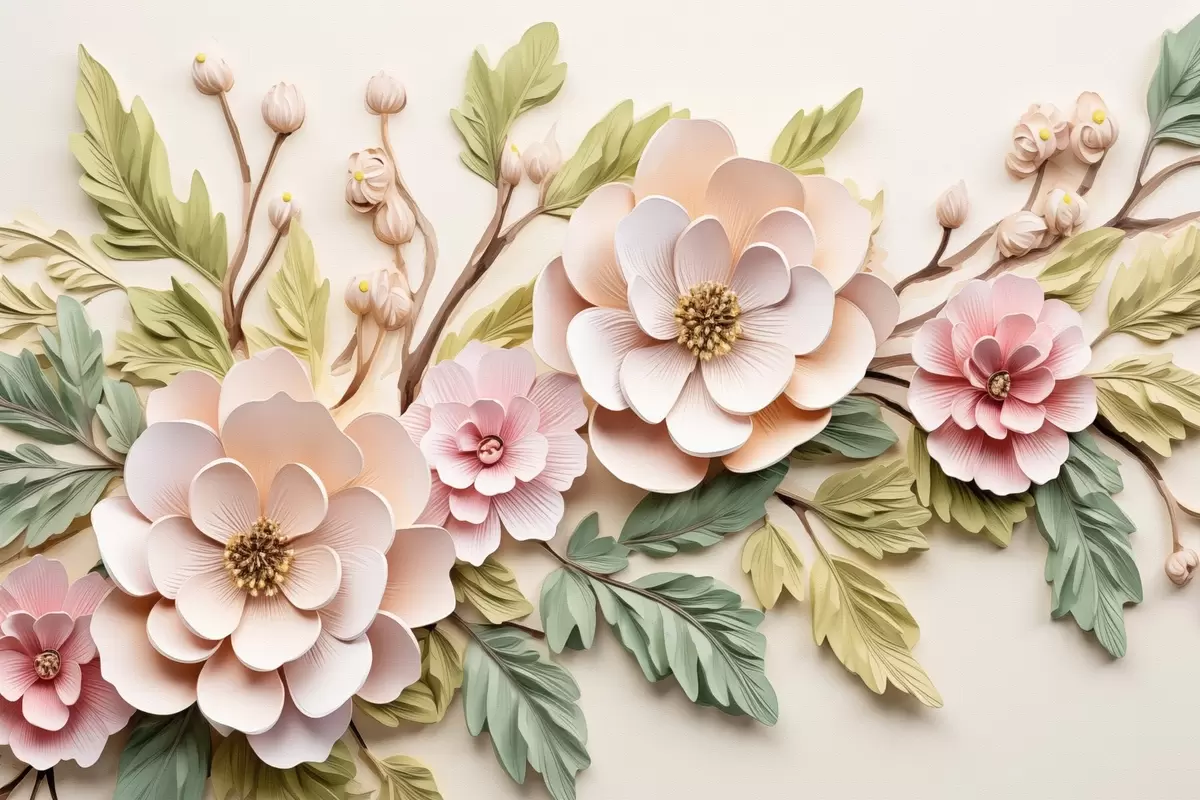 murales de pared Grandes ramos de flores, imitación de molduras s43333