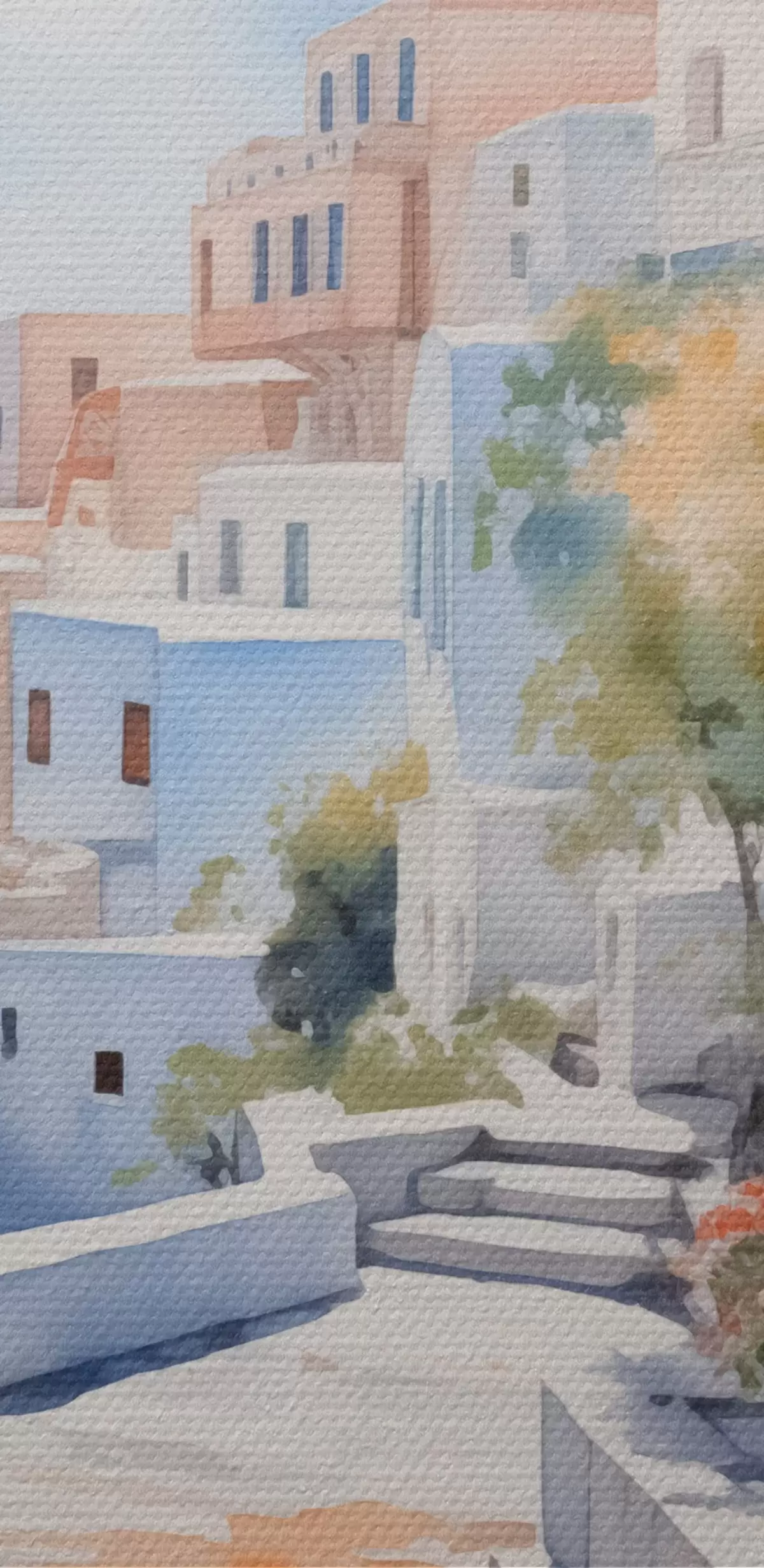 murales de pared Casas junto al mar imitación acuarela s43346