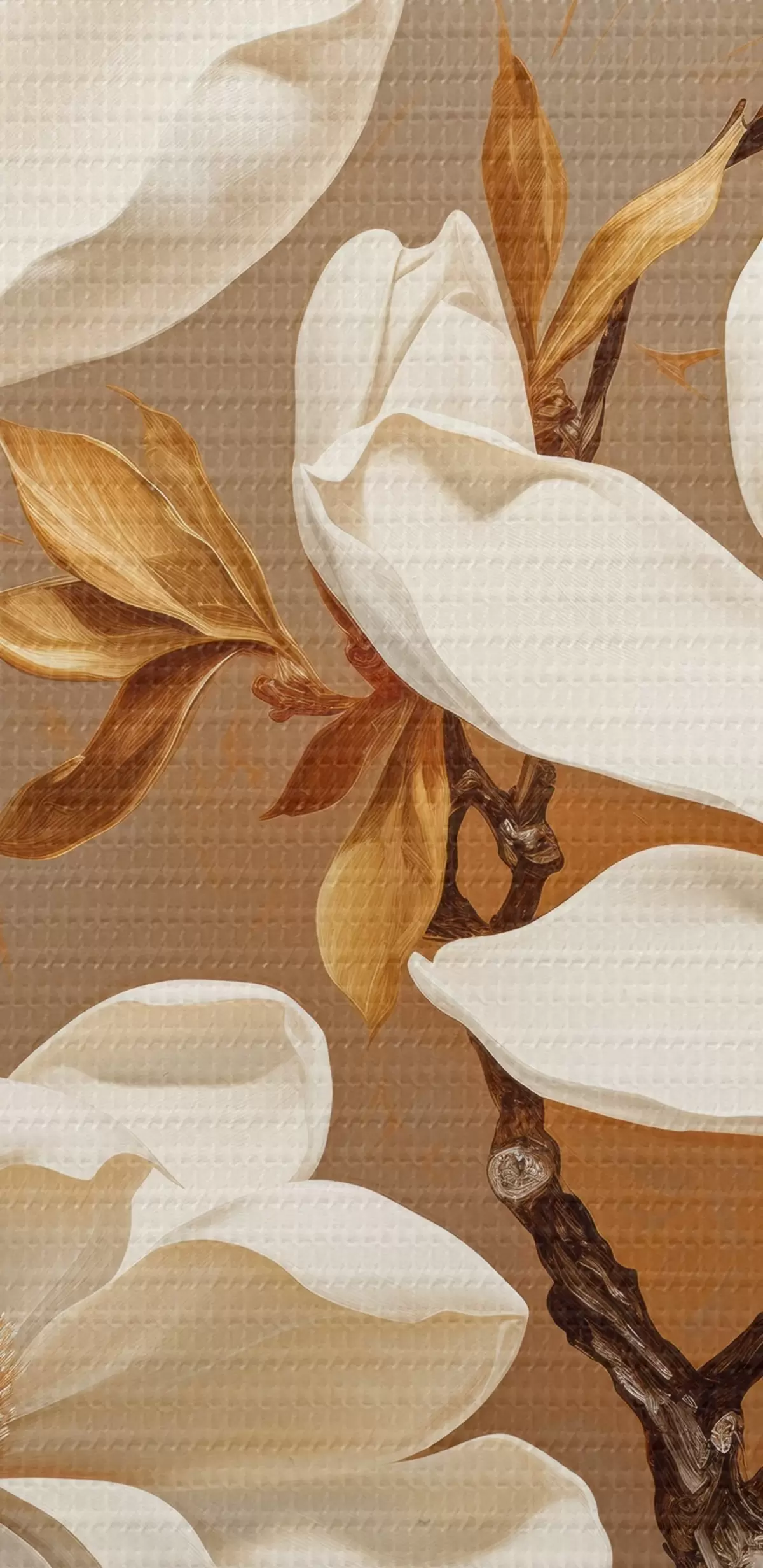 murales de pared Pintura al óleo con una magnolia blanca en una rama sobre fondo amarillo s43361