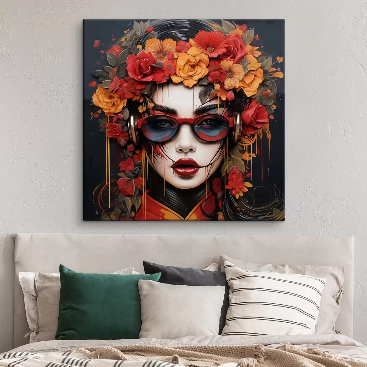 Cuadros Mujer con flores en la cabeza, estilo street art Nr s43362