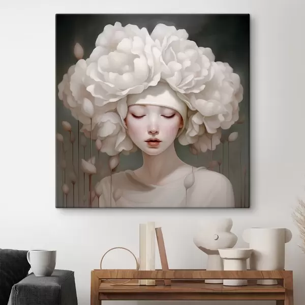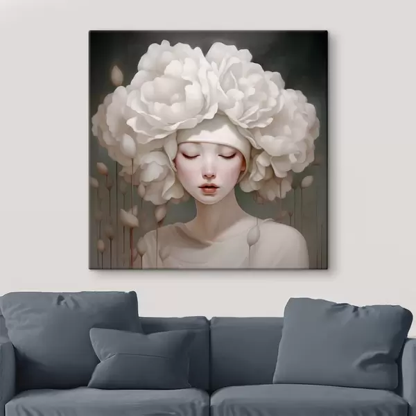 Cuadros Niña con flores en la cabeza en tonos suaves Nr s43385