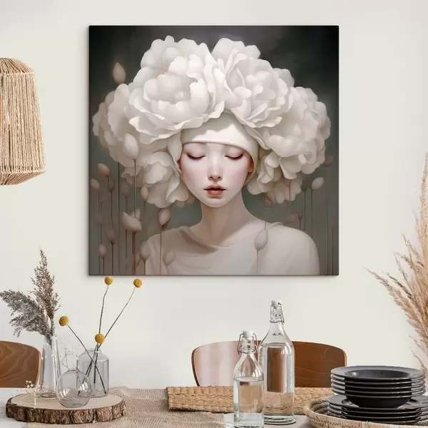 Cuadros Niña con flores en la cabeza en tonos suaves Nr s43385