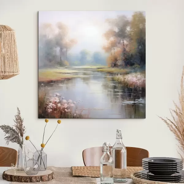 Cuadros Naturaleza forestal con un río, flores y árboles Nr s43386