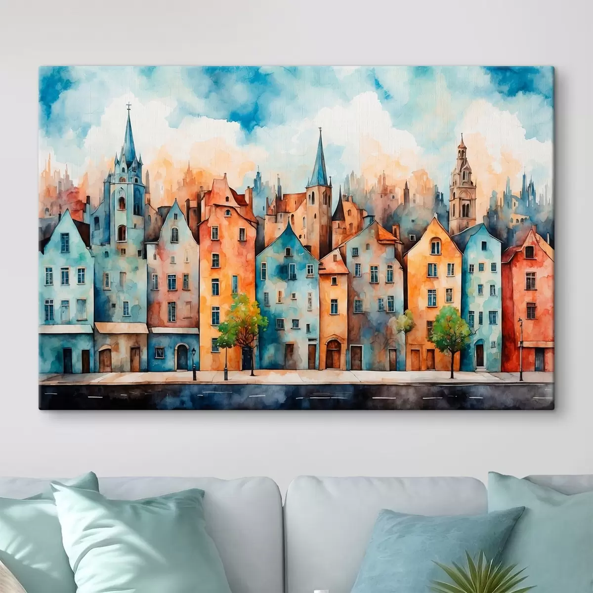 Cuadros Ciudad europea en estilo pintura acuarela Nr s43441