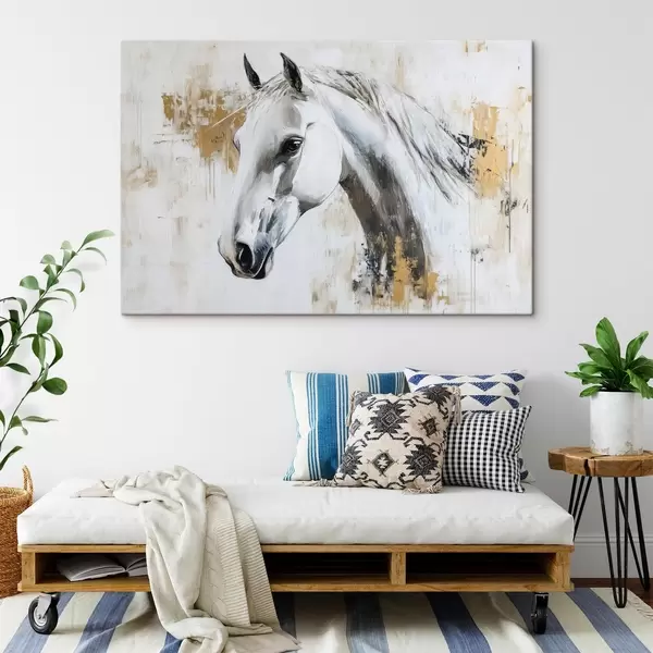 murales de pared Caballo blanco, dibujo al óleo, animales, pinceladas vivas s43497