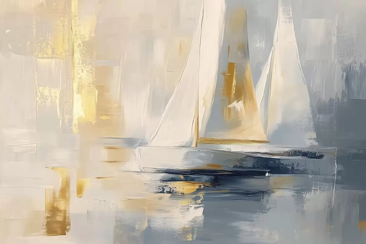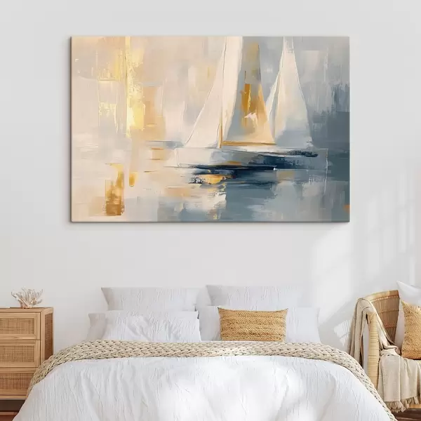 Cuadros Abstracción con los veleros en el mar, estilo acrílico, puesta de sol Nr s43500