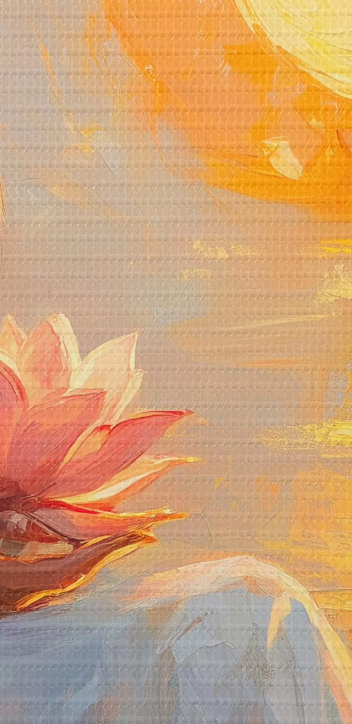 murales de pared Mujer con flor de loto en la puesta de sol, pájaro blanco, dibujo al óleo s43501