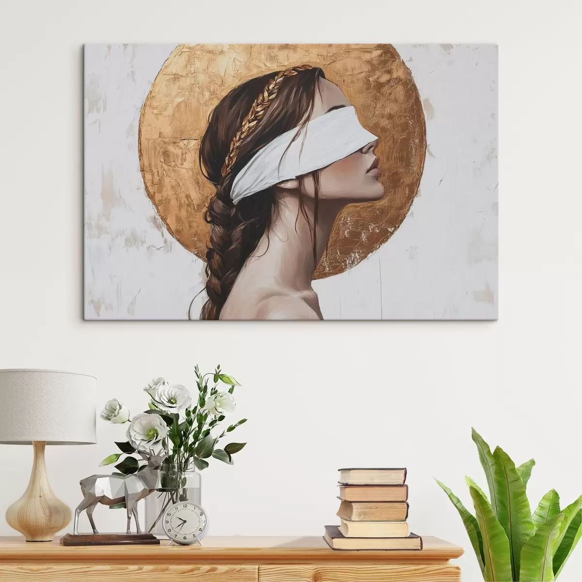 Cuadros Mujer con venda en los ojos, Grecia, dibujo estilo acrílico Nr s43502